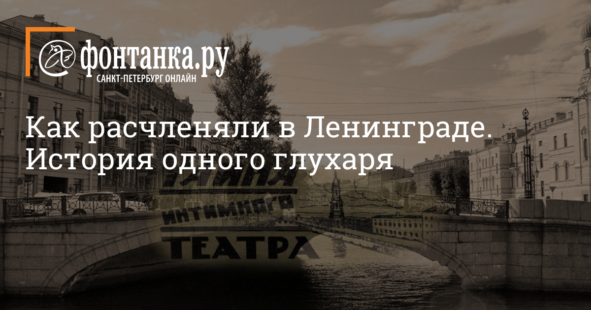 Как расчленяли в Ленинграде. История одного глухаря (фото) Ровно год назад доцент Олег Соколов был найден на набережной реки Мойки с останками тела свой сожительницы. После этого истории о расчленении стали чуть ли не постоянными в новостной картине Петербурга. Однако ошибкой было бы думать, что раньше такого в нашем городе не происходило.