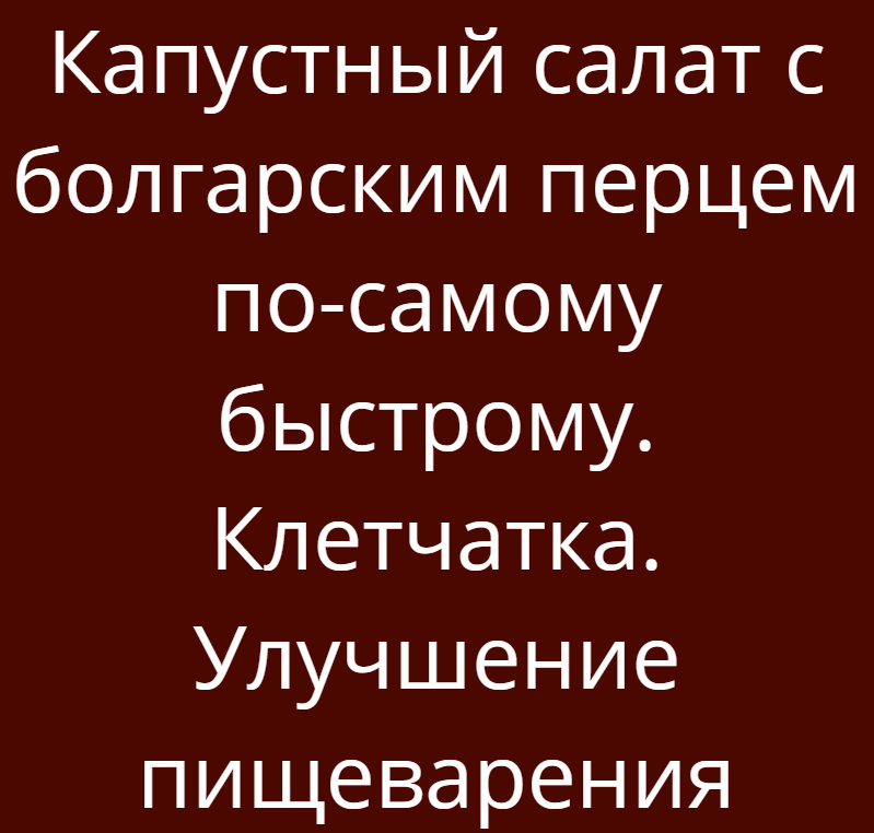 Капустный салат с болгарским перцем по-самому быстрому. Клетчатка. Улучшение пищеварения Мы периодически делаем себе вот такой простой капустный салатец. Ингредиенты 1. Капуста — кусок размером с ладошку 2. Болгарский перец — половина красного и половина желтого 3. Зелень — пучочек (любая) 4. Аджика — на кончике ножа 5. Лимон — 1 долька ПриготовлениеБерем капусту и перец, хорошо моем, мелко шинкуем прямо в тарелку, добавляем аджичку, […] Читай дальше на сайте. Жми подробнее ➡