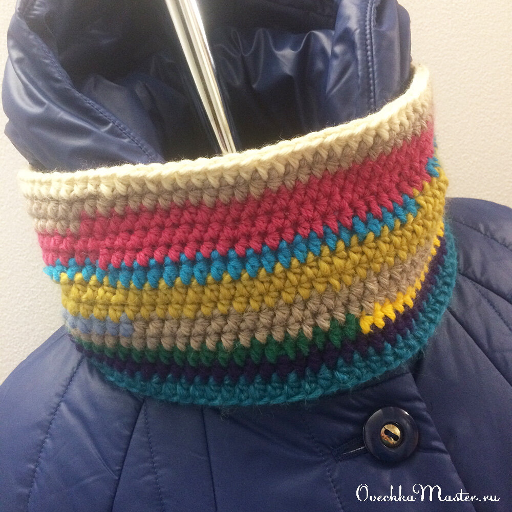 Яркий снуд из остатков пряжи прочными столбиками | Рукоделие от OvechkaMaster.ru | Яндекс Дзен