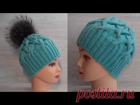 ШАПКА СПИЦАМИ которая ВСЕМ ПОДХОДИТ! ПЫШНАЯ ТЕПЛАЯ зимняя шапка с узором КОСА и красивым краем!