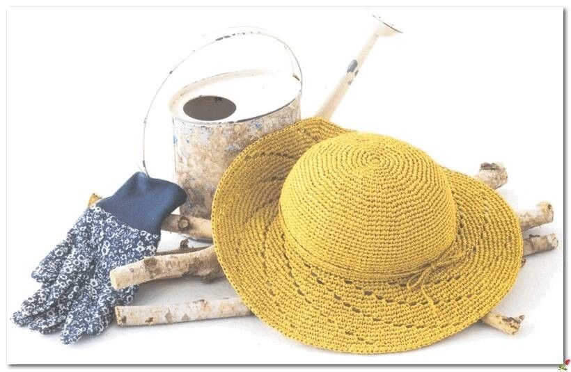 Летняя шляпка с широкими ажурными полями. Крючком. Схемы. / knittingideas.ru