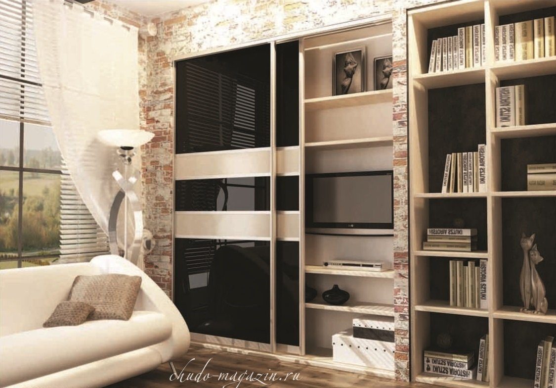 Шкаф купе с полкой для телевизора, встроенный в нишу Ш-327. В интернет-магазине Chudo-magazin.ru в Москве.