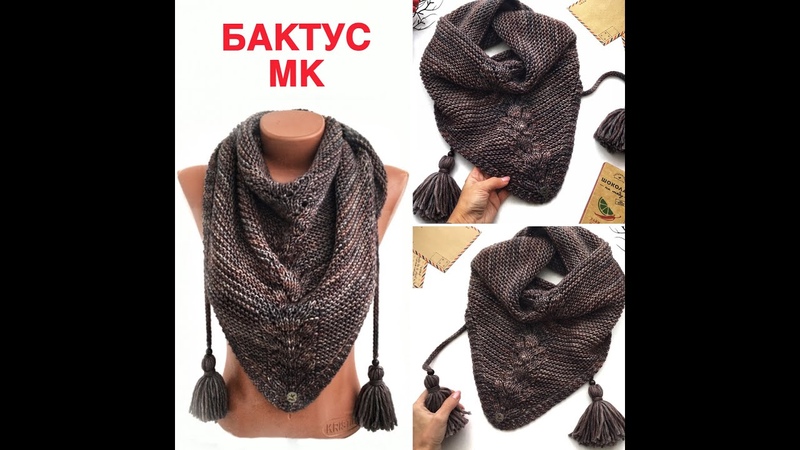 Предлагаю подробный МК по вязанию модного женского аксессуара – бактуса - шейного платка с кисточками.