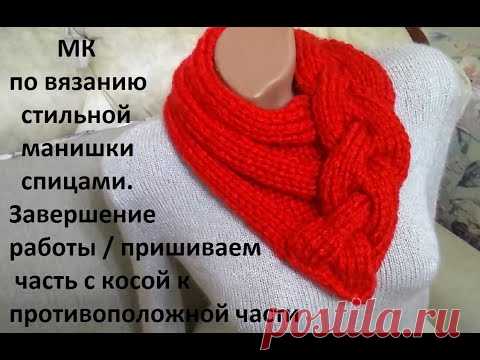 МК по вязанию стильной манишки. Завершение работы / пришиваем часть с косой к противоположной части