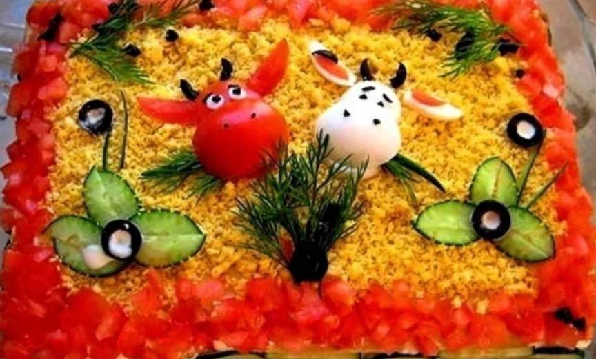 Рецепт салата «На лугу» на новогодний стол 2021 - красивый и вкусный новогодний салат в год белого металлического Быка