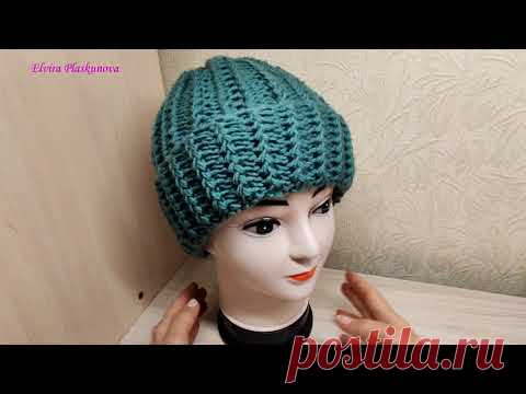 ШАПКА ЖЕНСКАЯ СПИЦАМИ ПОВОРОТНЫМИ РЯДАМИ.