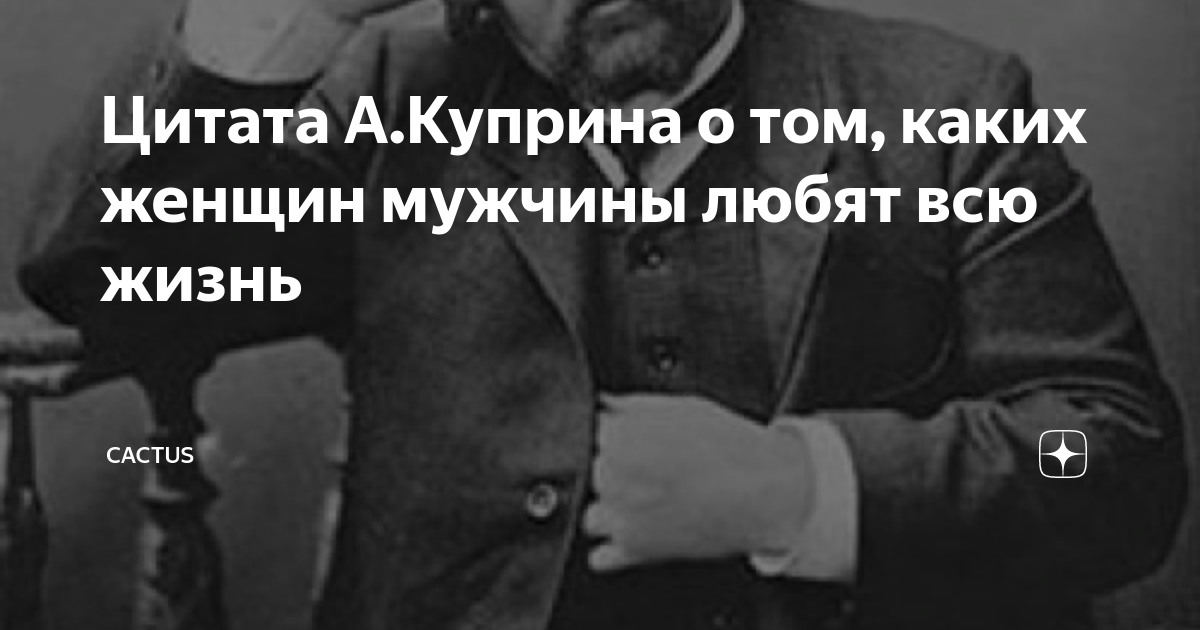 Цитата А.Куприна о том, каких женщин мужчины любят всю жизнь У меня на работе есть 2 категории женщин: молодые и старые немолодые. Первые озабочены поиском спутника жизни, а вторые - много лет замужем. Причем, первые завидуют стабильной жизни вторых. А женщины бальзаковского возраста многое бы отдали за то, чтобы вот так же беззаботно бегать на свидания в красивых платьях, слышать комплименты и получать букеты цветов. Но вот что удивительно: все отношения