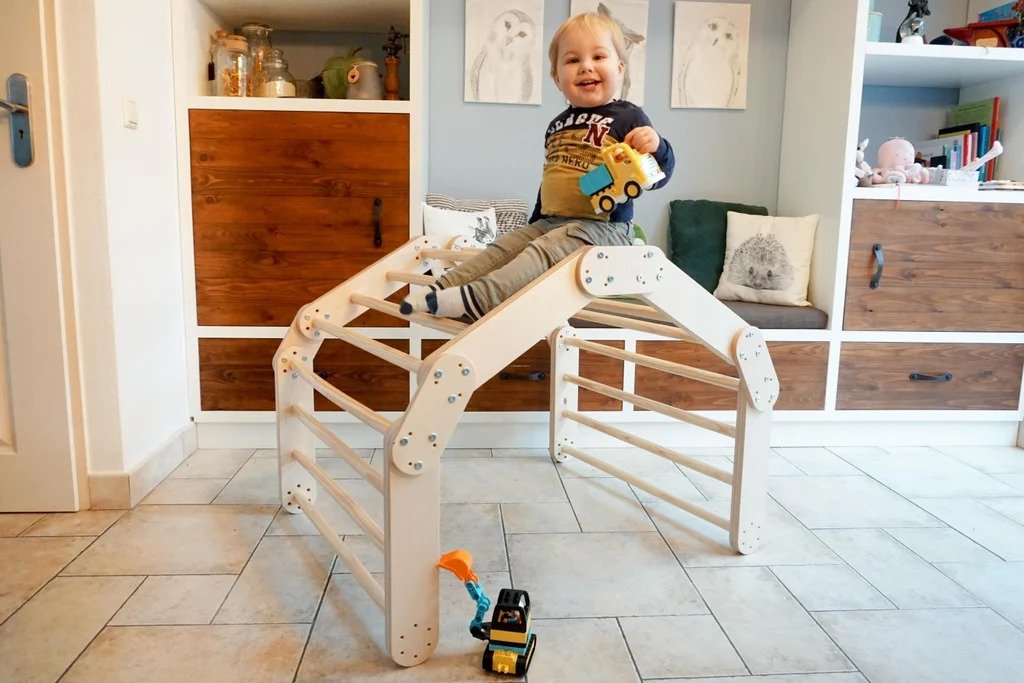 Детская горка-трансформер (треугольник Пиклера) Треугольник Пиклер - это спортивный уголок для детей от нескольких месяцев и старше. Наряду с другими инструментами, спортивный уголок входил в комплекс по воспитанию и развитии ребенка. Это универсальный спортивный снаряд, развивающих моторные навыки малыша, его физическую силу, ловкость,