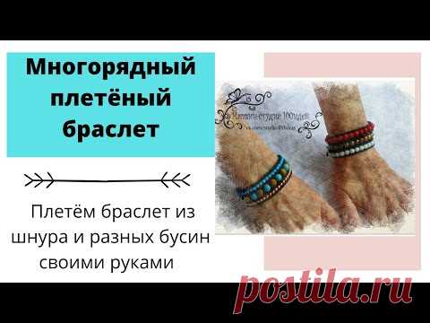 Многорядный плетёный браслет из бусин и шнура. Мастер-класс. | Украшения из бисера: схемы, мастер классы