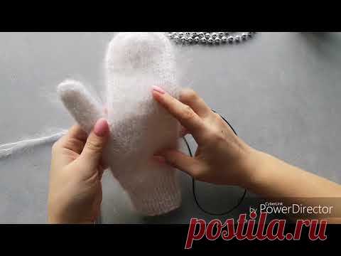 Варежки из мохера индийским клином. Анатомические варежки