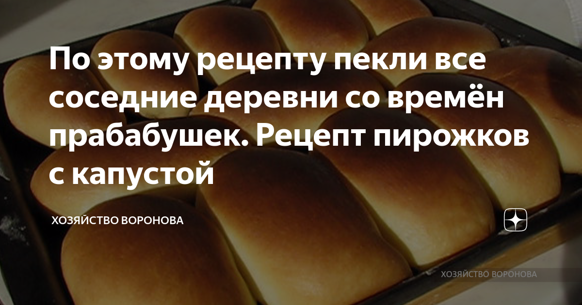 По этому рецепту пекли все соседние деревни со времён прабабушек. Рецепт пирожков с капустой Великолепные пирожки пекла в печах вся округа, со времён прабабушек. Деревни раньше были многодетные и гостинцы любили все. Мы тоже так готовим и говорят, лучших пирожков никогда не ели. Да так и есть, это лучший рецепт ! Пирожки Прежде чем продолжить, хочу поблагодарить того, кто поделится рецептом от своих предков в комментариях. 😄👌🏻 Кстати, меня найти можно в YouTube "Хозяйство