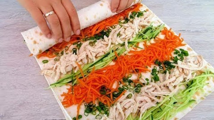 Промажьте два лаваша вкуснейшим соусом и получите великолепную закуску! Рулет из лаваша / Roll