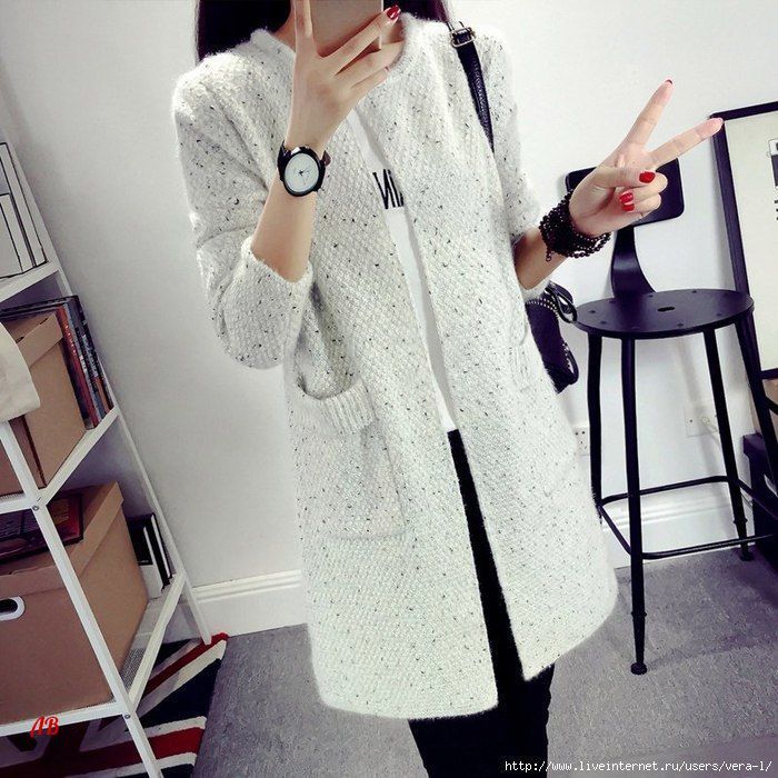 Стильное пальто спицами Стильное пальто спицами Как связать стильное пальто спицами. На модели пальто связано жемчужным узором. Схему узора вязания пальто спицами смотрите ниже. Залог красоты здесь правильно подобранная п…