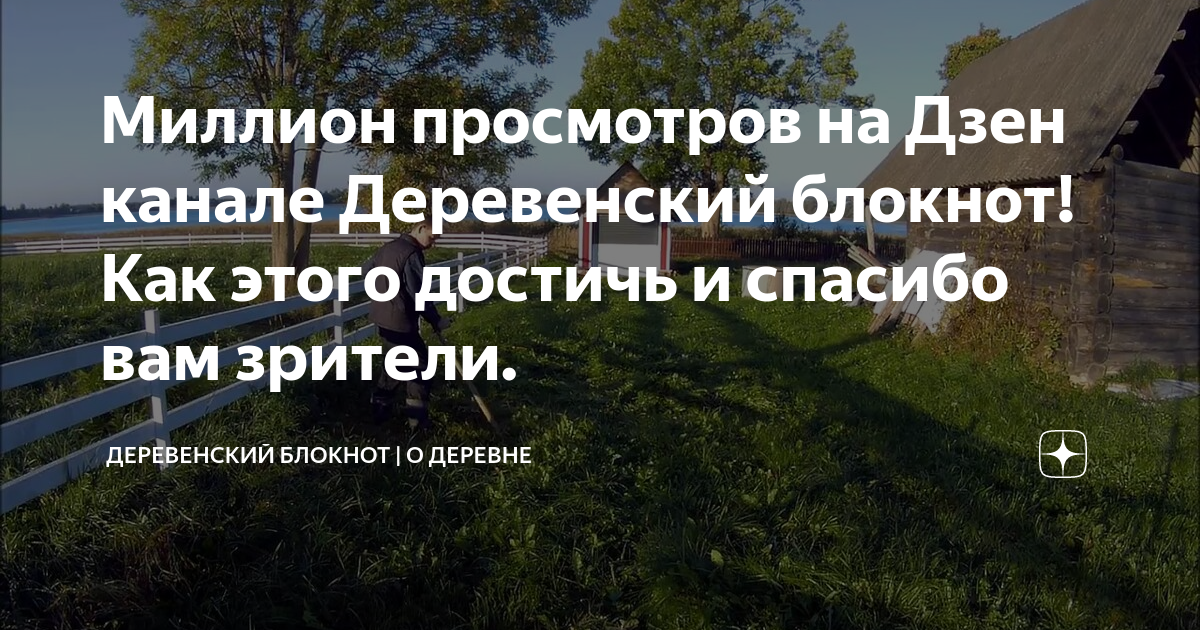 Миллион просмотров на Дзен канале Деревенский блокнот! Как этого достичь и спасибо вам зрители.