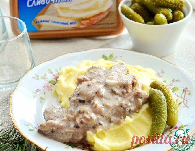Бефстроганов с плавленым сыром и грибами – кулинарный рецепт