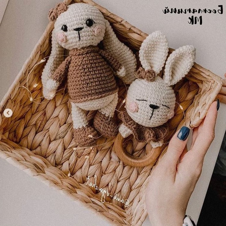 Схема амигуруми зайки погремушки и игрушки по одной схеме