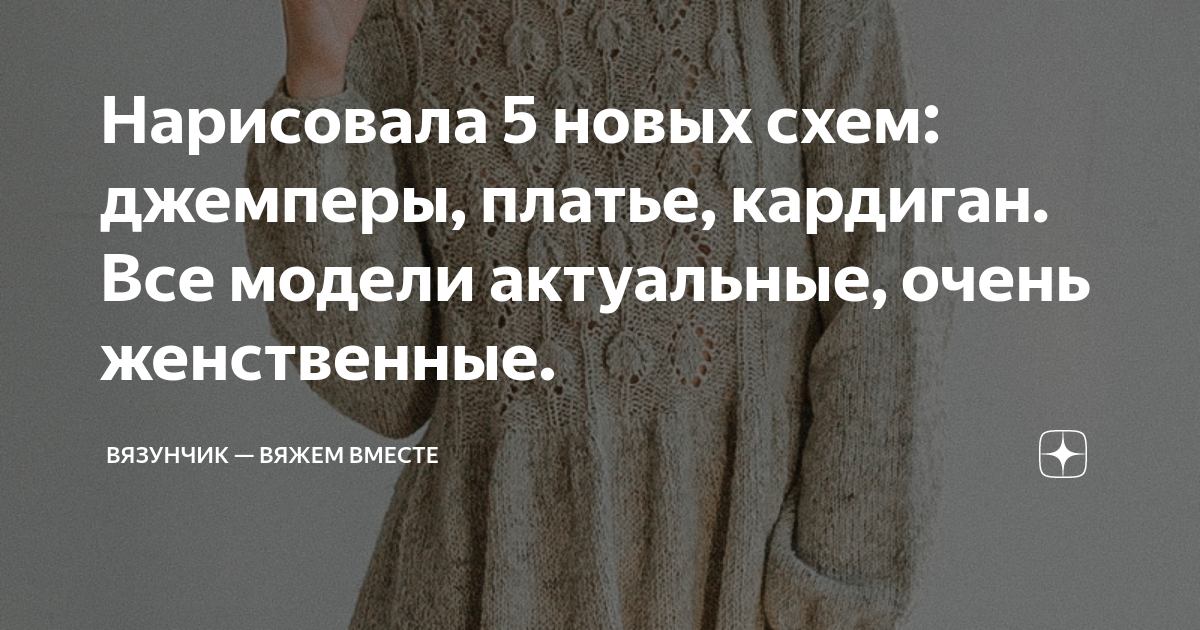 Нарисовала 5 новых схем: джемперы, платье, кардиган. Все модели актуальные, очень женственные. Подборки — это, конечно, хорошо, но не могу я не порадовать своих читателей и в особенности подписчиков новыми схемами. Тем более что модели актуальные, 2020 года, хотя тот и подходит к концу.