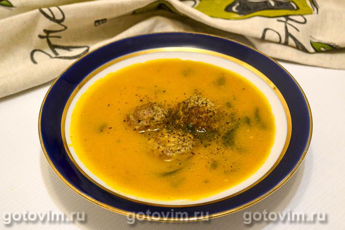 Суп-пюре из моркови с фрикадельками. Рецепт с фото Протертые супы - это нежные, питательные, вкусный первые блюда, разнообразие которых поражает. Шелковистая консистенция супов достигается пюрированием овощей и круп, из которых они варятся. Супы можно сварить на любом мясном или овощном бульоне, или просто на воде. Сливки и сыр, добавленные в суп-пюре, придают особо вкусную сливочную нотку готовому блюду. Ингредиенты для приготовления морковного супа-пюре с мясными фрикаде... Подробнее