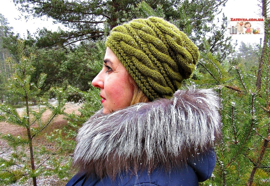 Женская шапка спицами с поперечными косами | Пикабу