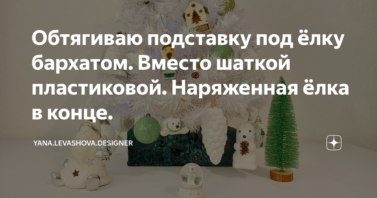 Обтягиваю подставку под ёлку бархатом. Вместо шаткой пластиковой. Наряженная ёлка в конце.