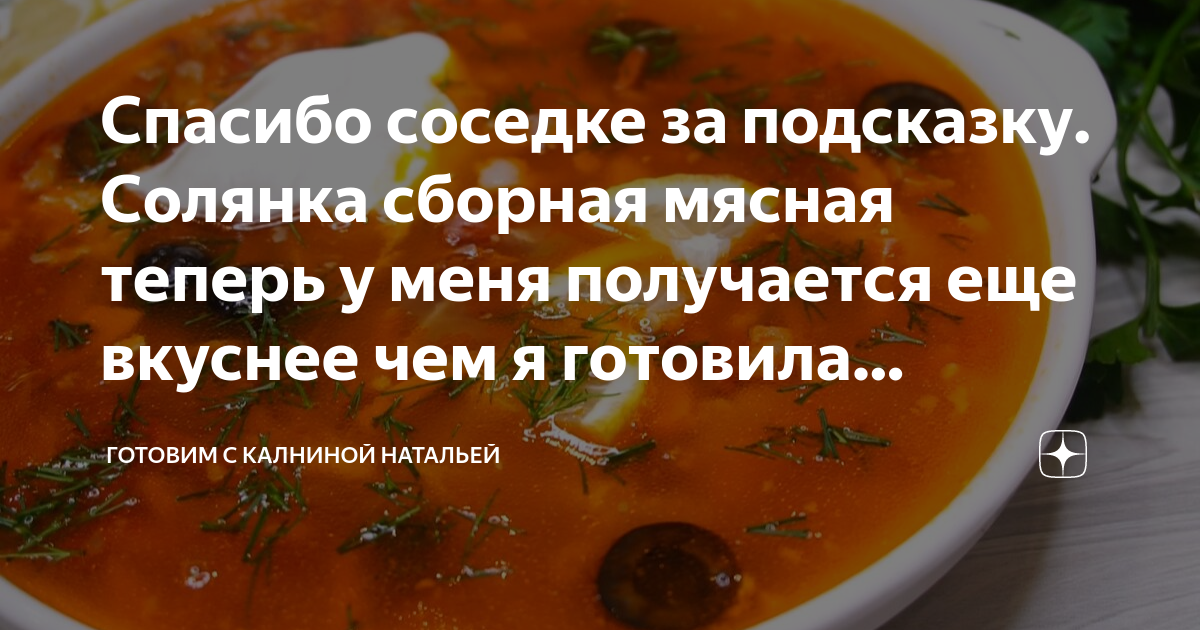 Спасибо соседке за подсказку. Солянка сборная мясная теперь у меня получается еще вкуснее чем я готовила раньше. Делюсь рецептом | Готовим с Калниной Натальей | Яндекс Дзен