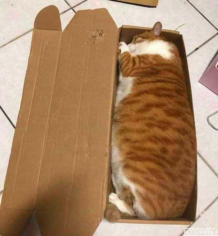 'Первый закон котодинамики: коробка должна быть заполнена котом без остатка!' Смешные котики | Которадуга | Яндекс Дзен