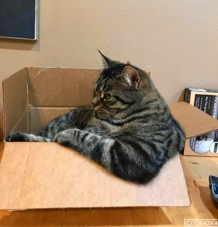 'Первый закон котодинамики: коробка должна быть заполнена котом без остатка!' Смешные котики | Которадуга | Яндекс Дзен