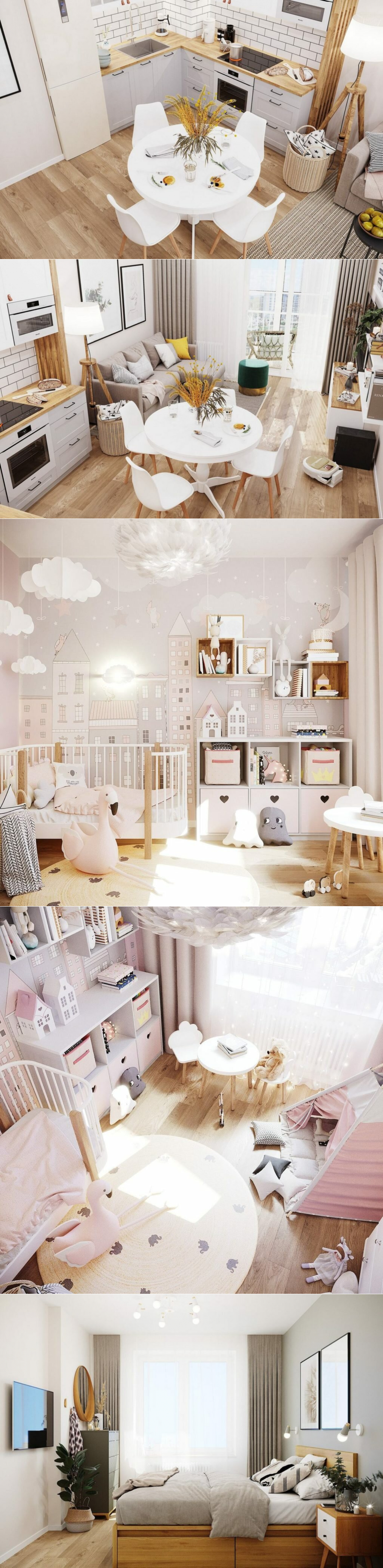 Без пафоса, по-домашнему, но при этом очень стильно. Натуральные цвета в двушке для молодой семьи с ребенком