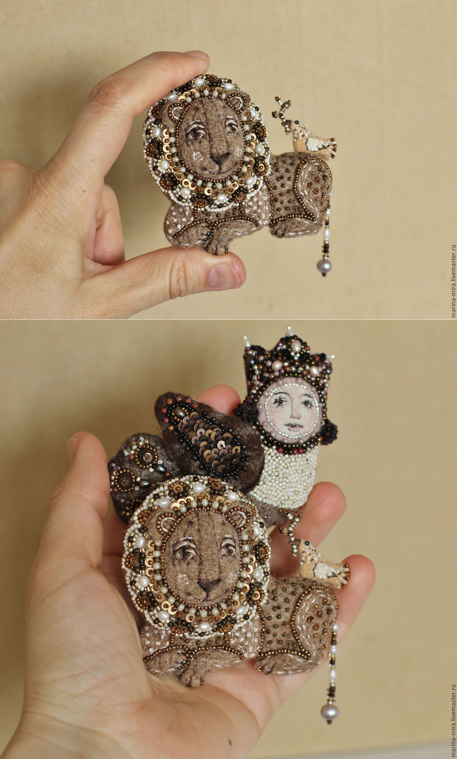 войлочная брошь Лев.брошь.брошь из шерсти брошь из бисера – заказать на Ярмарке Мастеров – 97QJPRU | Брошь-булавка, Реутов