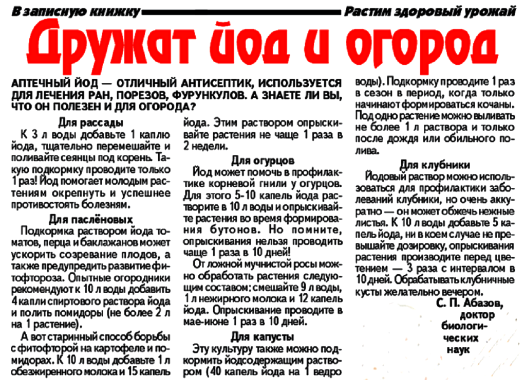 Дружат йод и огород