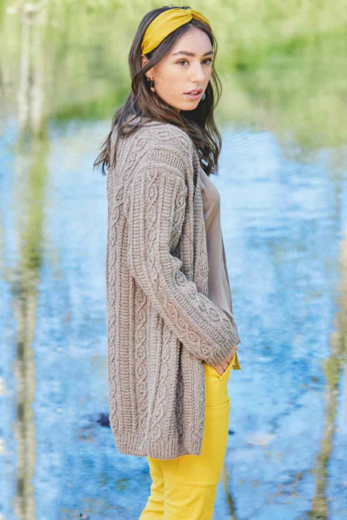 Удлиненный кардиган спицами с узором из фантазийных кос - Портал рукоделия и моды