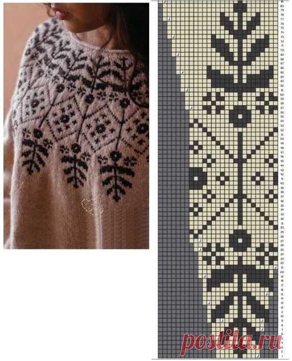 Джемпера с круглой кокеткой с жаккардовым узором. Спицы. Изделия с круглой кокеткой, как правило, вяжутся сверху вниз от горловины. Это удобно, так как в процессе вязания можно совершать примерку в любой стадии готовности изделия.В этом посте приведены только схемы жаккардовых узоров для джемперов с круглой кокеткой как женских, так и мужских.