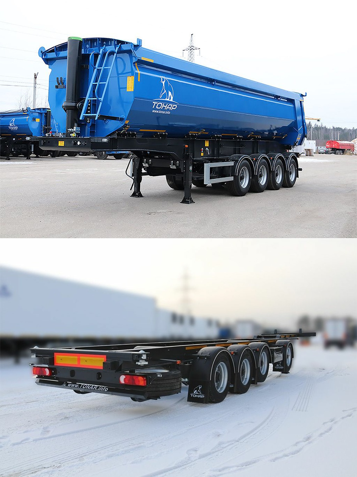 2020 декабрь. Подмосковный машиностроительный завод «Тонар» выпустил новые модели полуприцепов: четырехосный Тонар SH4-38 вместительностью 38 м³ грузоподъёмностью 37270 кг; четырехосный контейнеровоз Тонар K4-40 с передней вынесенной осью грузоподъёмностью 41880 кг