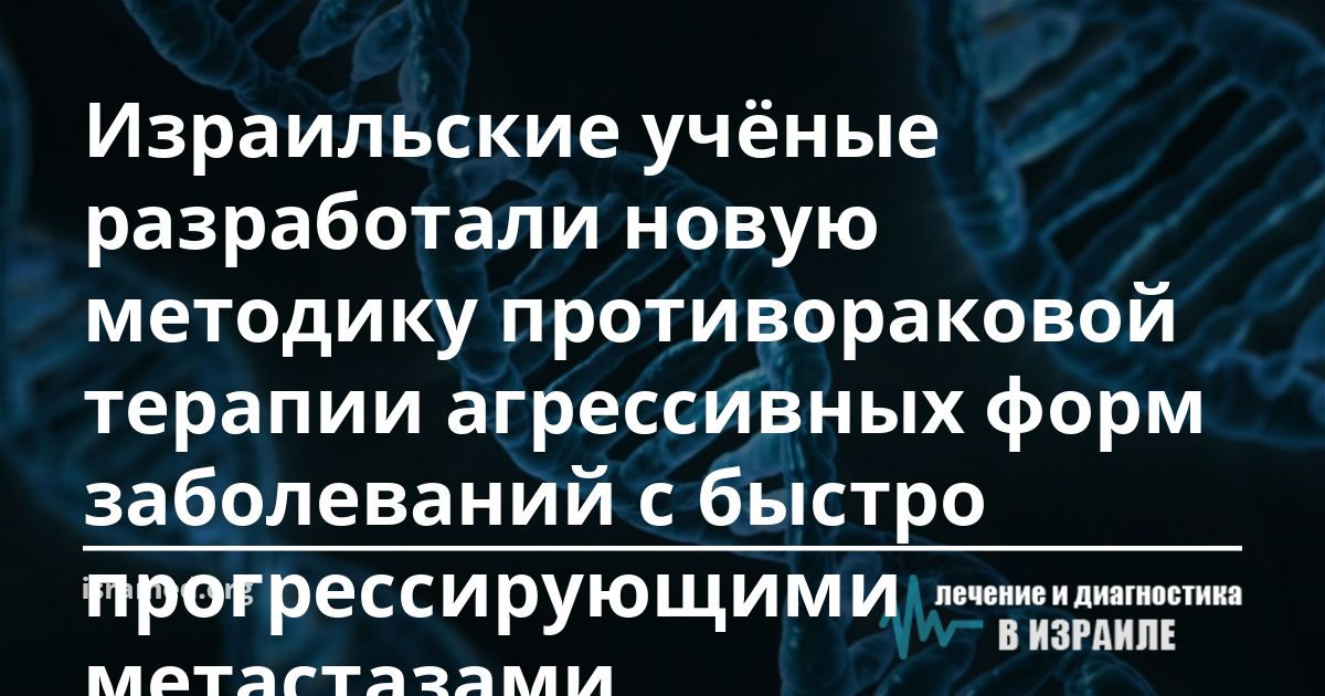 Израильские учёные разработали новую методику противораковой терапии агрессивных форм заболеваний с быстро прогрессирующими метастазами Исследовательской группе удалось создать новую уникальную систему, нацеленную на клетки рака. Она несет специальное генетическое послание, кодирующее фермент CRISPR / Cas9 и действует как молекулярные ножницы, которые разрезают клеточные ДНК. Таким образом, с помощью манипуляций на генном уровне происходит уничтожение онкообразования.