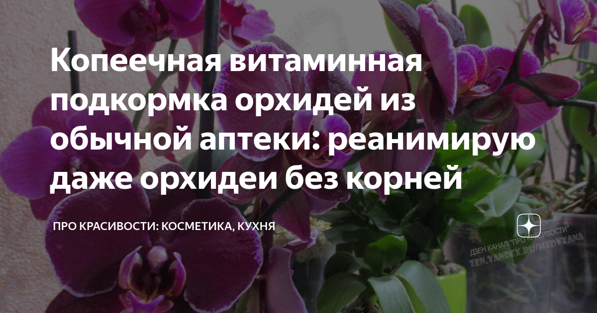Копеечная витаминная подкормка орхидей из обычной аптеки: реанимирую даже орхидеи без корней Самый оптимальный способ подкормки орхидей (как ослабленных, так и здоровых цветущих) – это витаминные коктейли. И не обязательно приобретать какие-то дорогостоящие средства для растений! Можно обойтись доступными препаратами из обычной аптеки. Нужно лишь знать, какие витамины и для чего нужны, а также строго соблюдать дозировку рабочего раствора. *Фото принадлежат каналу "ПРО красивости" Как
