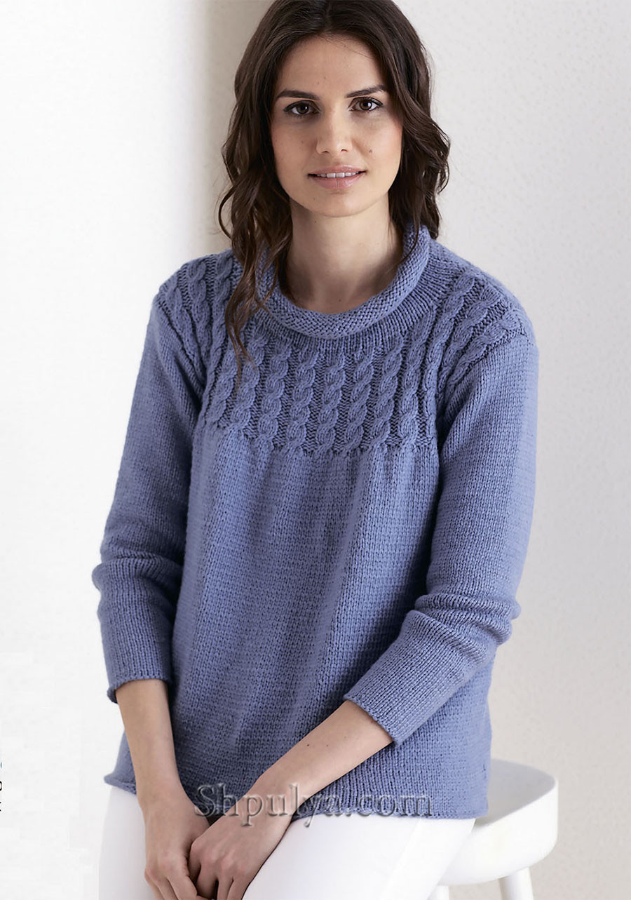Пуловер с косами и укороченным рукавом — Shpulya.com - схемы с описанием для вязания спицами и крючком