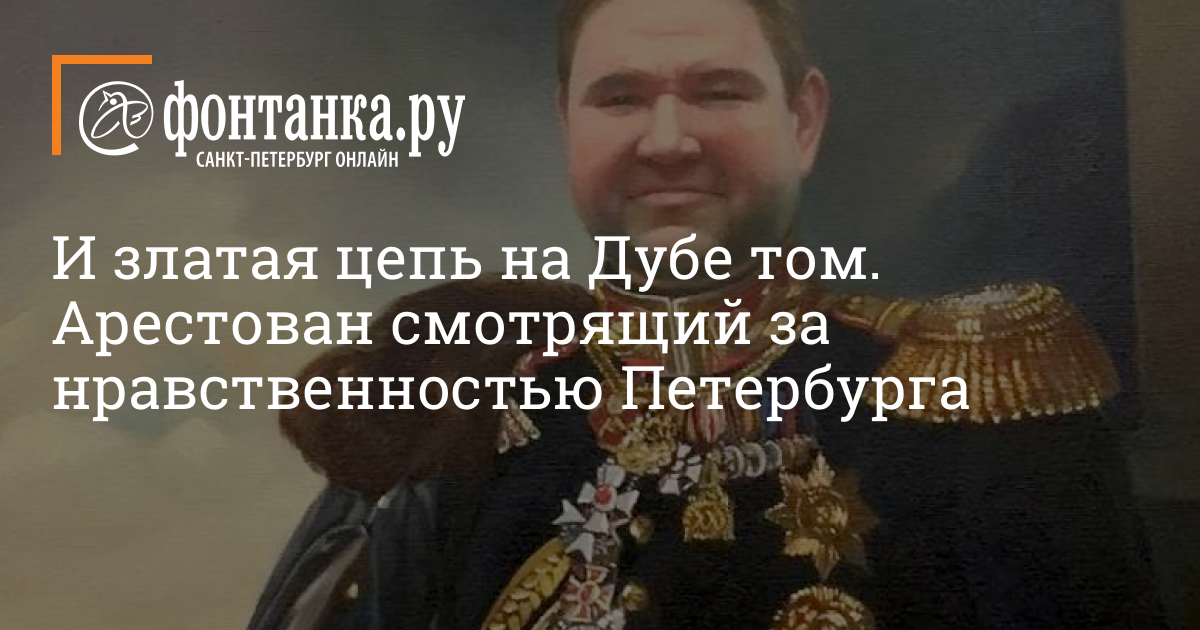 И златая цепь на Дубе том. Арестован смотрящий за нравственностью Петербурга (фото) Городской рынок секс-услуг в панике — накрыли бывшего майора Дуба. А он честно делился, чтобы все интим-салоны спали спокойно. Но недавно сделал нарядное предложение и уголовному розыску. «Фонтанка» заметила ньюсмейкера в позе внука генералиссимуса Суворова.