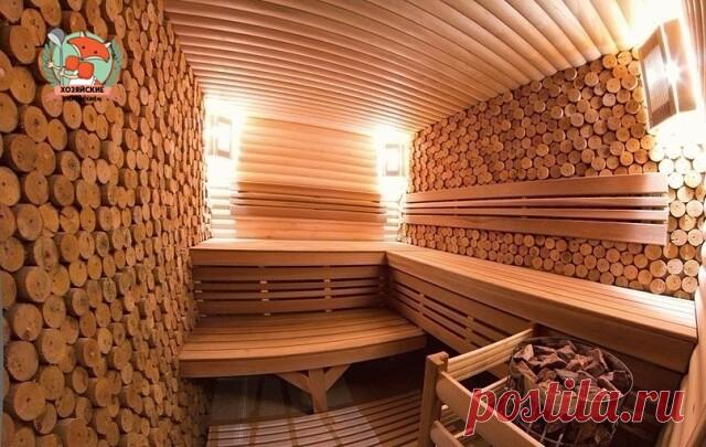Парилка в бане из срезов кедра
