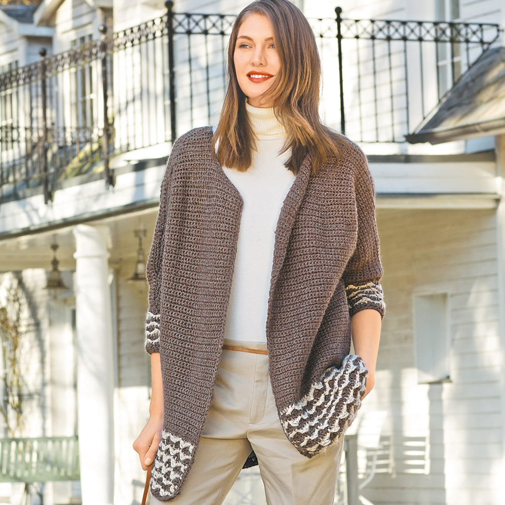 Объёмный кардиган с цветной отделкой. Крючком. / hobby-as.ru