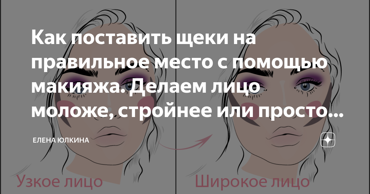 Как поставить щеки на правильное место с помощью макияжа. Делаем лицо моложе, стройнее или просто красивее Привет, меня зовут Елена, спасибо, что читаете мой Дзен!