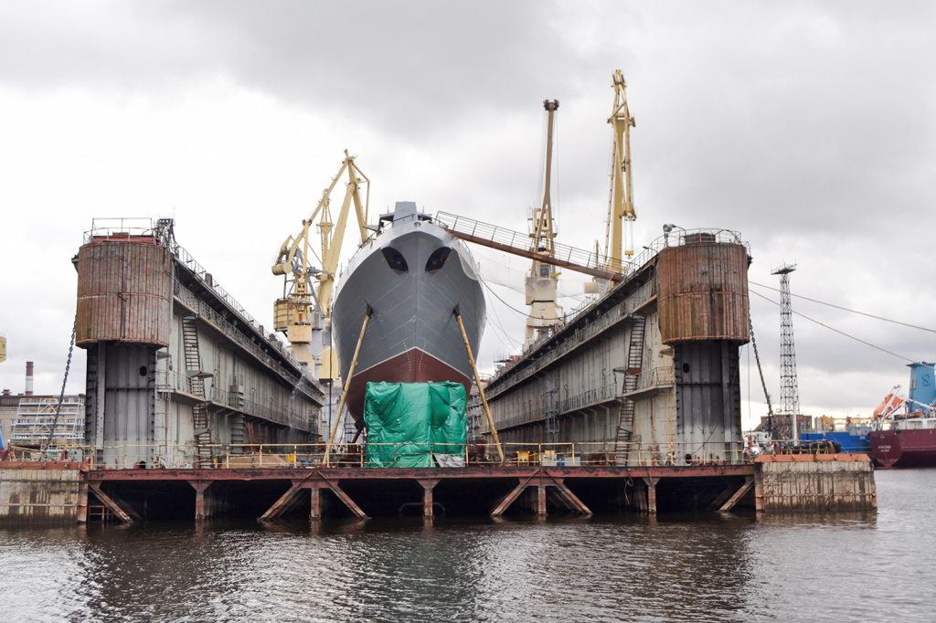 На Северной верфи на фрегат Адмирал Головко погружены первые отечественные газотурбинные двигатели и редукторы Для проведения технологически сложной операции работники стапельного цеха Северной верфи демонтировали три палубы с переборками.