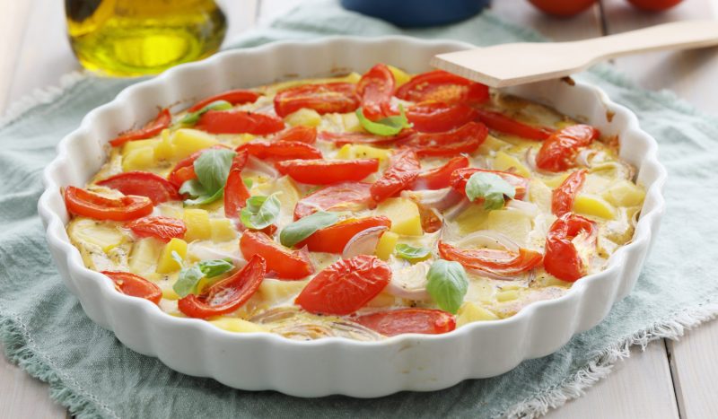 Фриттата с картофелем, помидорами и луком - Лайфхакер