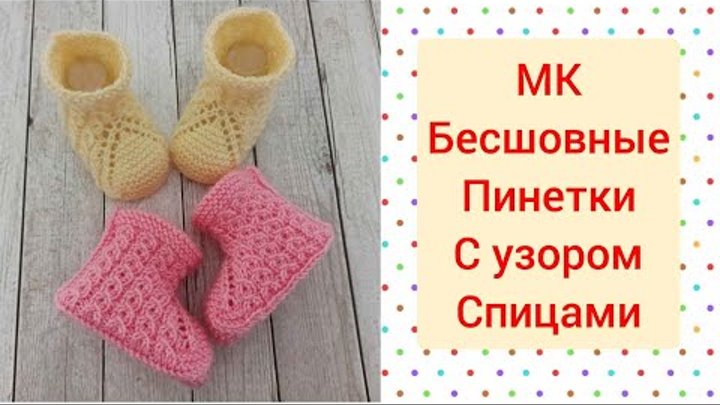 Бесшовные пинетки с узором вязаные спицами/baby booties knitting