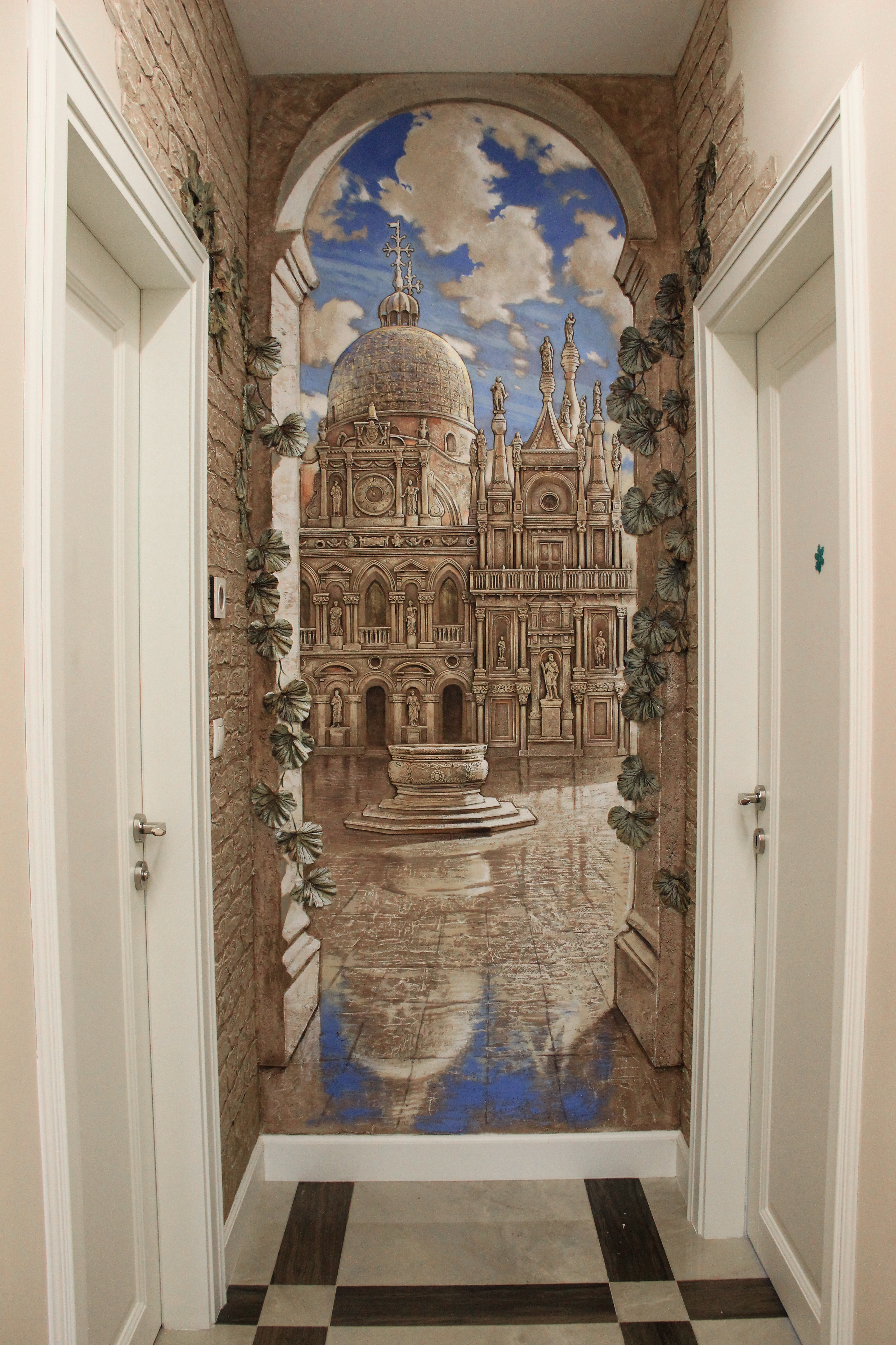 Зачастую, барельефную работу заказывают под впечатлением своих любимых путешествий. В этих работах важно передать не только правильную детализацию, но также сохранить созвучное заказчику виденье и настроение. Как портал в дорогие сердцу воспоминания. На фото панно Венеция, площадь Святого Марка.