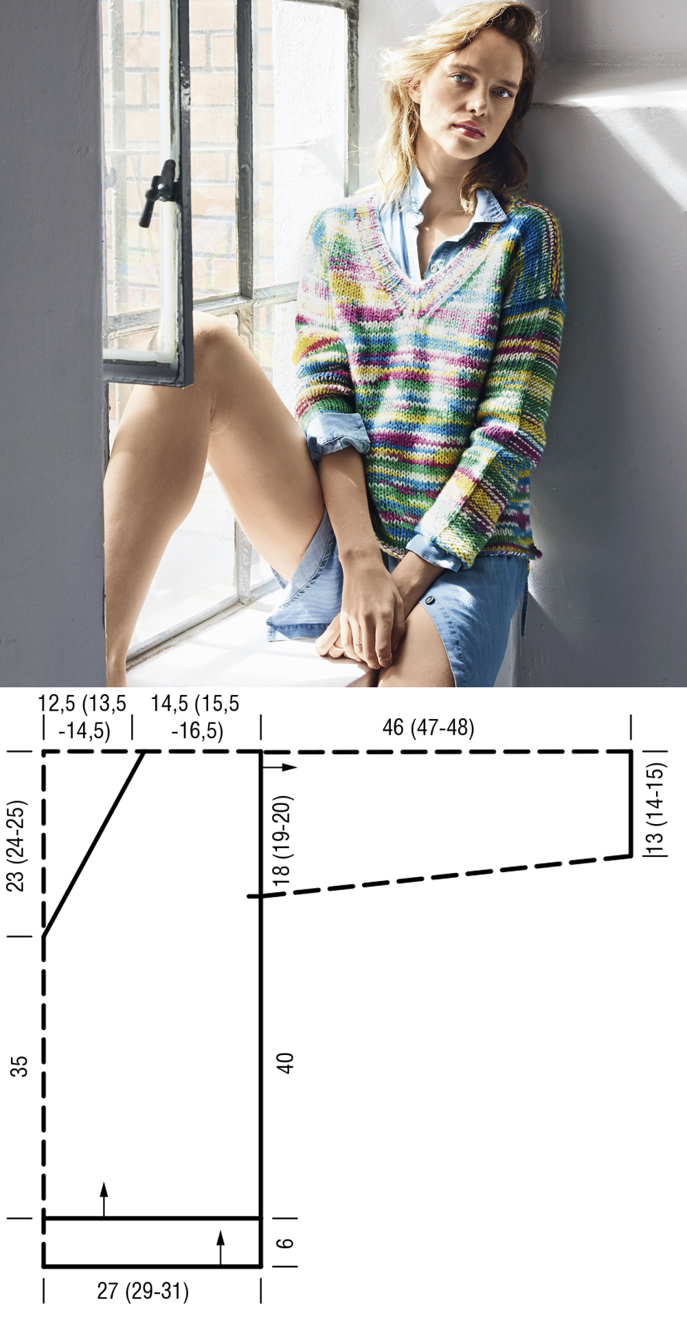 Пуловер из пряжи секционного крашения — схема вязания спицами с описанием на BurdaStyle.ru