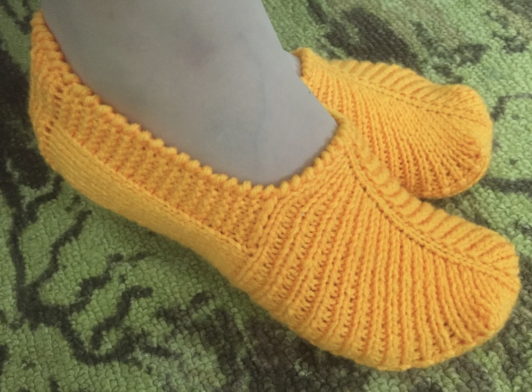 Тапочки на двух спицах Набрать 3 петли и выделить маркером центральную. 1 ряд: кромочная, накид, 1 изн., накид, кромочная 2 ряд: кромочная, 1 изн., накид, 1 лиц., накид, 1 изн., кромочная 3 ряд: кромочная, 1 лиц., 1 изн., накид, 1 изн., накид, 1 изн., 1 лиц.