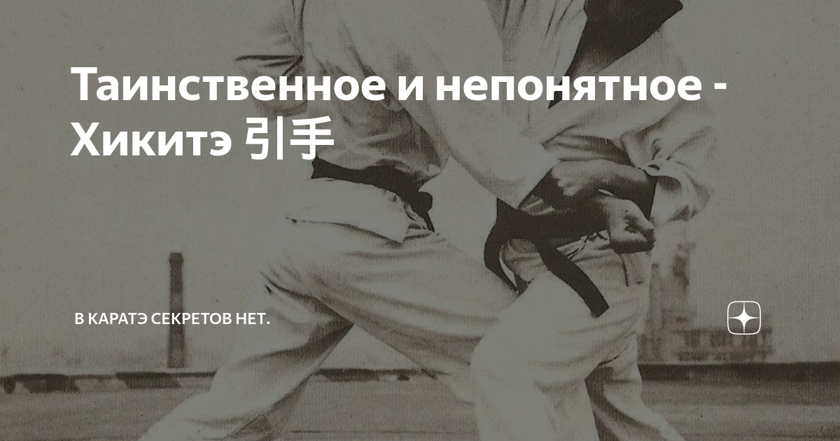 Таинственное и непонятное - Хикитэ 引手 Хикитэ (引手 - тянущая рука) это техническое действие, встречающееся в различных видах японских боевых искусств, таких как каратэ, дзюдо и джиу-джитсу. Название относится к руке, которая оттягивается назад, например, к бедру во время (или после) удара, в то время как другая (передняя) рука наносит удары, блокирует или бросает.