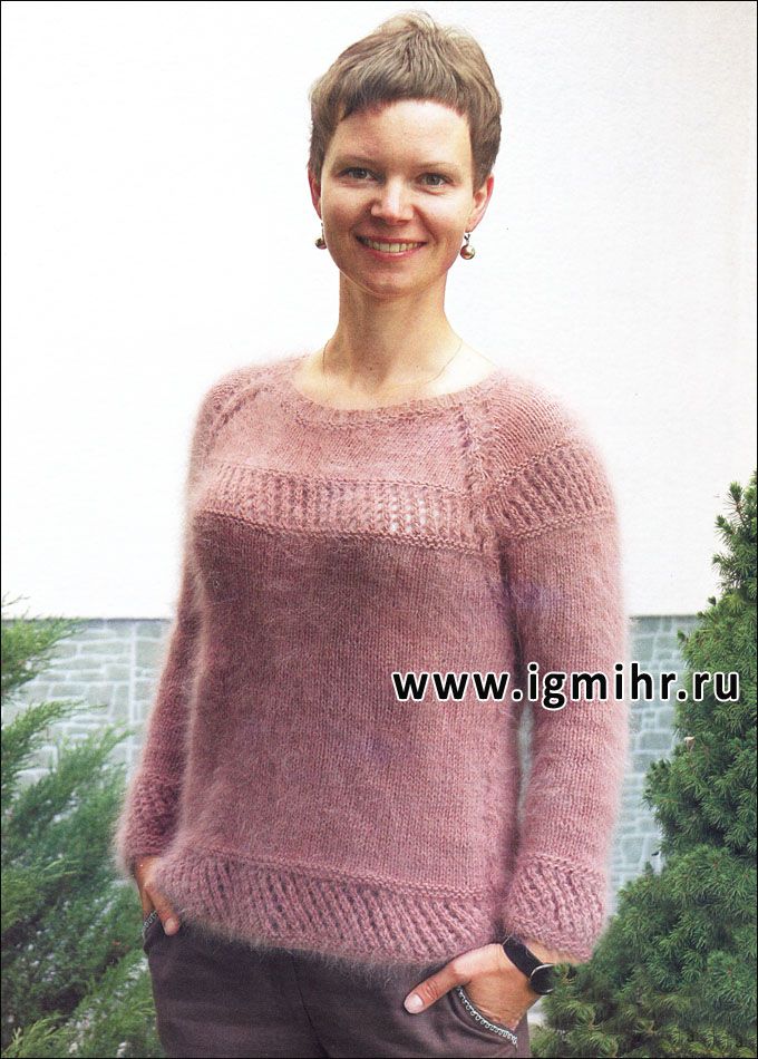 Мягкий, теплый и легкий пуловер-реглан из пушистой ангоры. Спицы