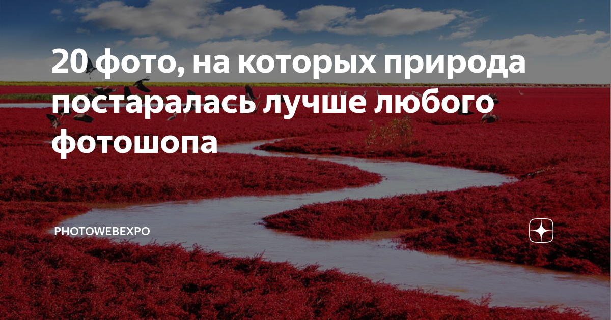 20 фото, на которых природа постаралась лучше любого фотошопа Хотя фотошоп был создан почти 50 лет назад, он стал огромной частью повседневной жизни. В наши дни очень трудно найти неотредактированные фотографии в интернете. Однако сама природа - замечательный художник, который может создавать изображения гораздо лучше, чем любой профессионал фотошопа. Уникальные очертания гор, чудные гримасы диких животных и завораживающие цвета неба могут только