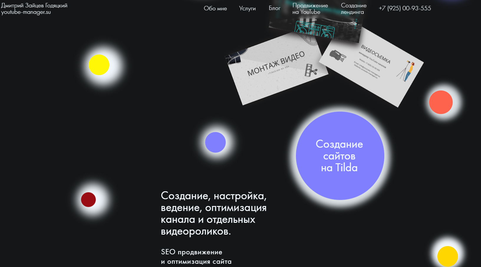 Менеджер YouTube каналов и Таргетолог Дмитрий Зайцев Годяцкий Создание многостраничных сайтов, сайтов-визиток, продающих лендингов, интернет-магазинов на Tilda